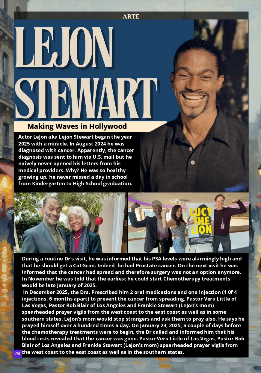 Actor Lejon aka Lejon Stewart began the year 2025 with a miracle. In August 2024 he was diagnosed with cancer. Apparently, the cancer diagnosis was sent to him via U.S. mail but he naively never opened his letters from his medical providers. Why? He was so healthy growing up, he never missed a day in school from Kindergarten to High School graduation.