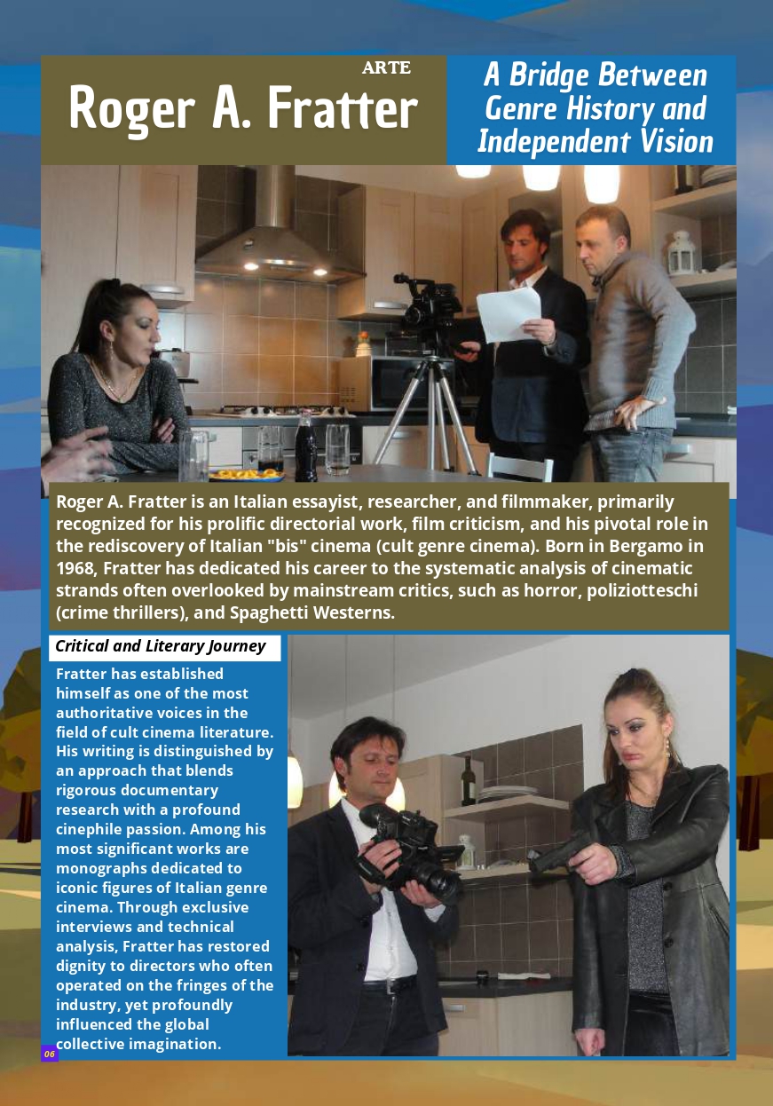Roger A. Fratter is an Italian essayist, researcher, and filmmaker, primarily recognized for his prolific directorial work, film criticism, and his pivotal role in the rediscovery of Italian “bis” cinema (cult genre cinema). Born in Bergamo in 1968, Fratter has dedicated his career to the systematic analysis of cinematic strands often overlooked by mainstream critics, such as horror, poliziotteschi (crime thrillers), and Spaghetti Westerns.